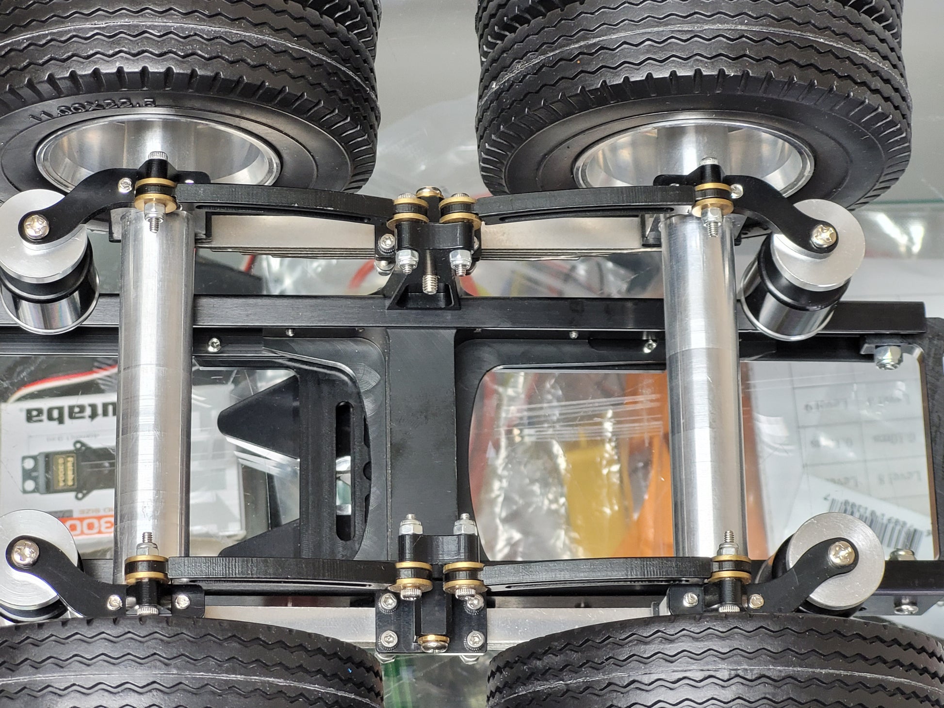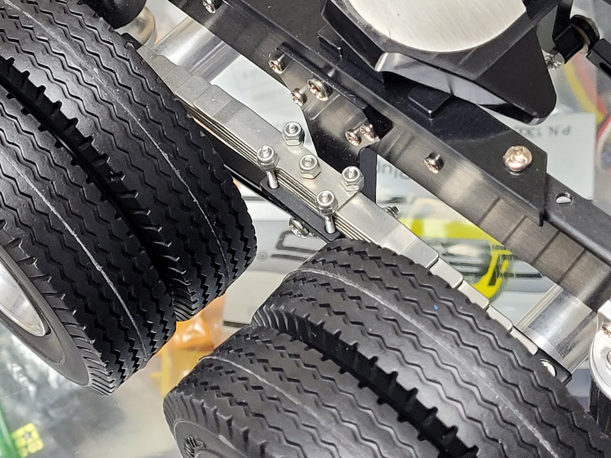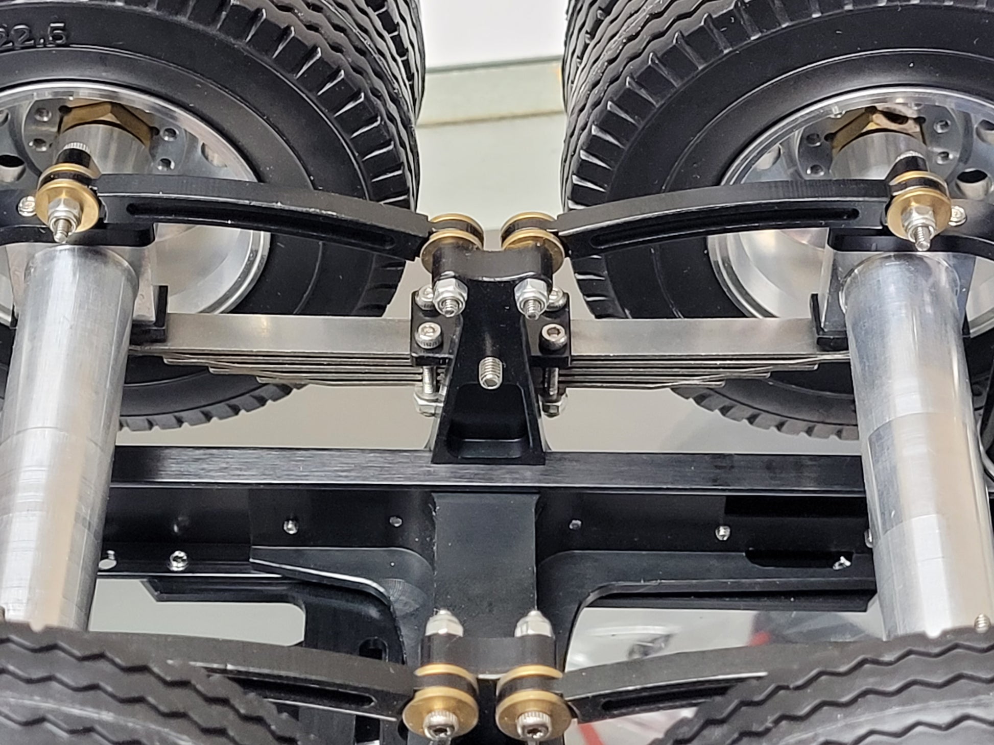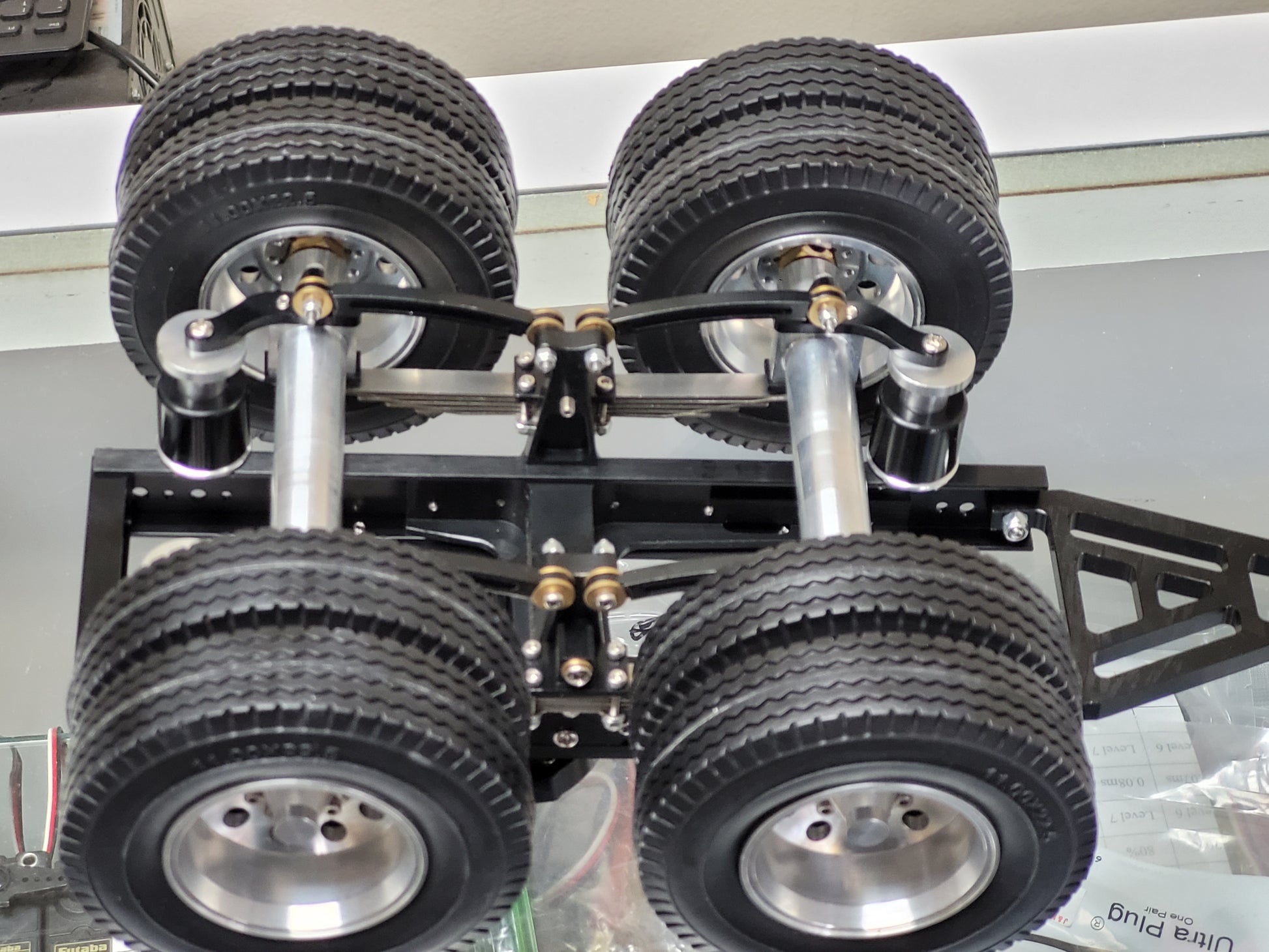 This custom-made Tamiya 1/14 scale R/C Semi Tractor Trailer Dolly features a full aluminum construction with two axles, pin mount style attachment, and a rear 5th wheel coupler. Measuring approximately 12.5 inches long, 4.5 inches high, and 7.25 inches wide, it includes realistic airbag and leaf spring suspension, aluminum rims, fifth wheel, and frame. Securely mount it to your semi truck using four bolts. For any inquiries, feel free to reach out.