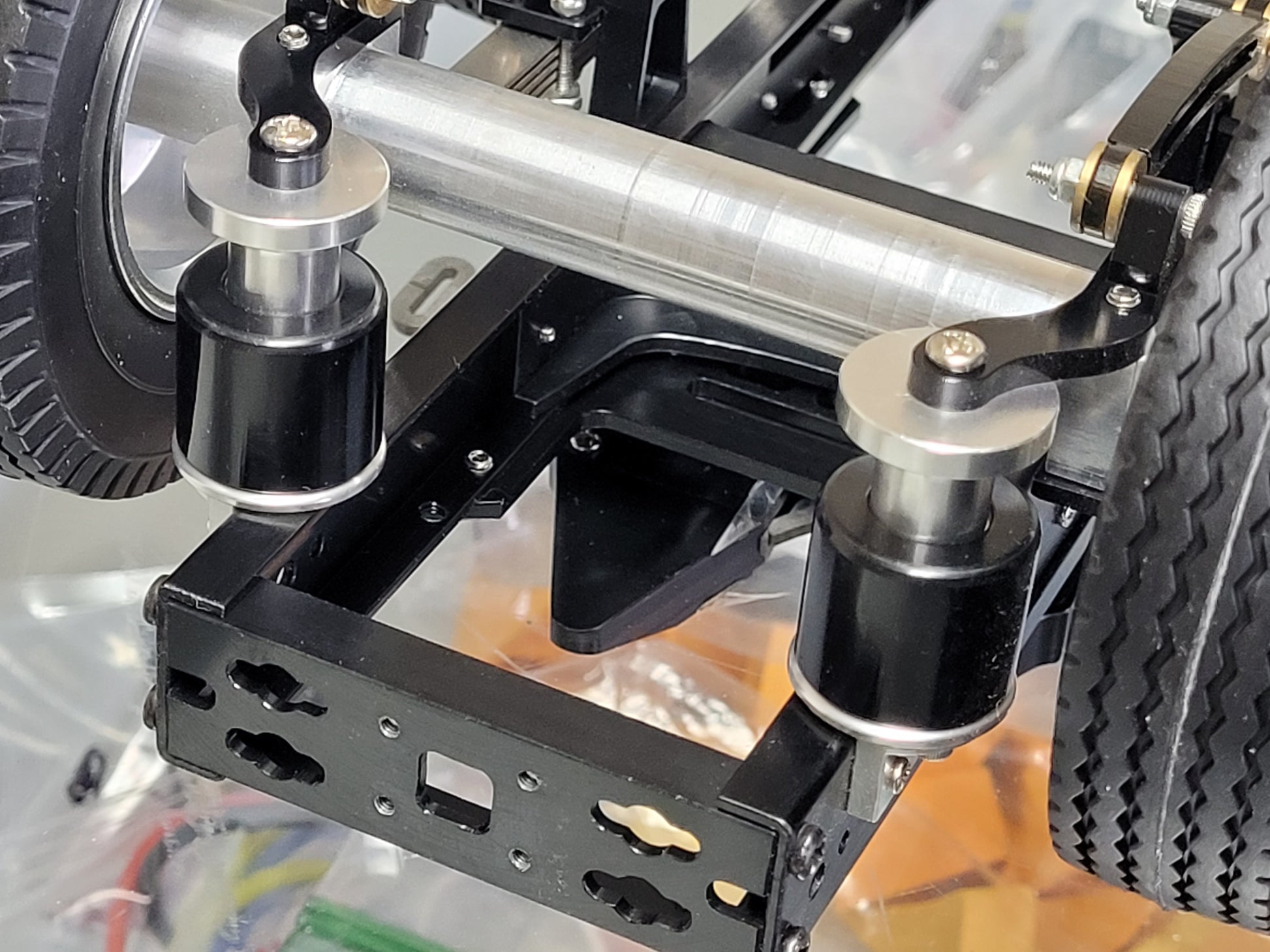 Aluminum 2 Axles Dolly Pin Mount 5th Wheel Coupler 1/14 R/C Semi Tractor Pull Trailer for Tamiya King Hauler Grand Hauler Knight Hauler Globeliner Scania Actros Semi