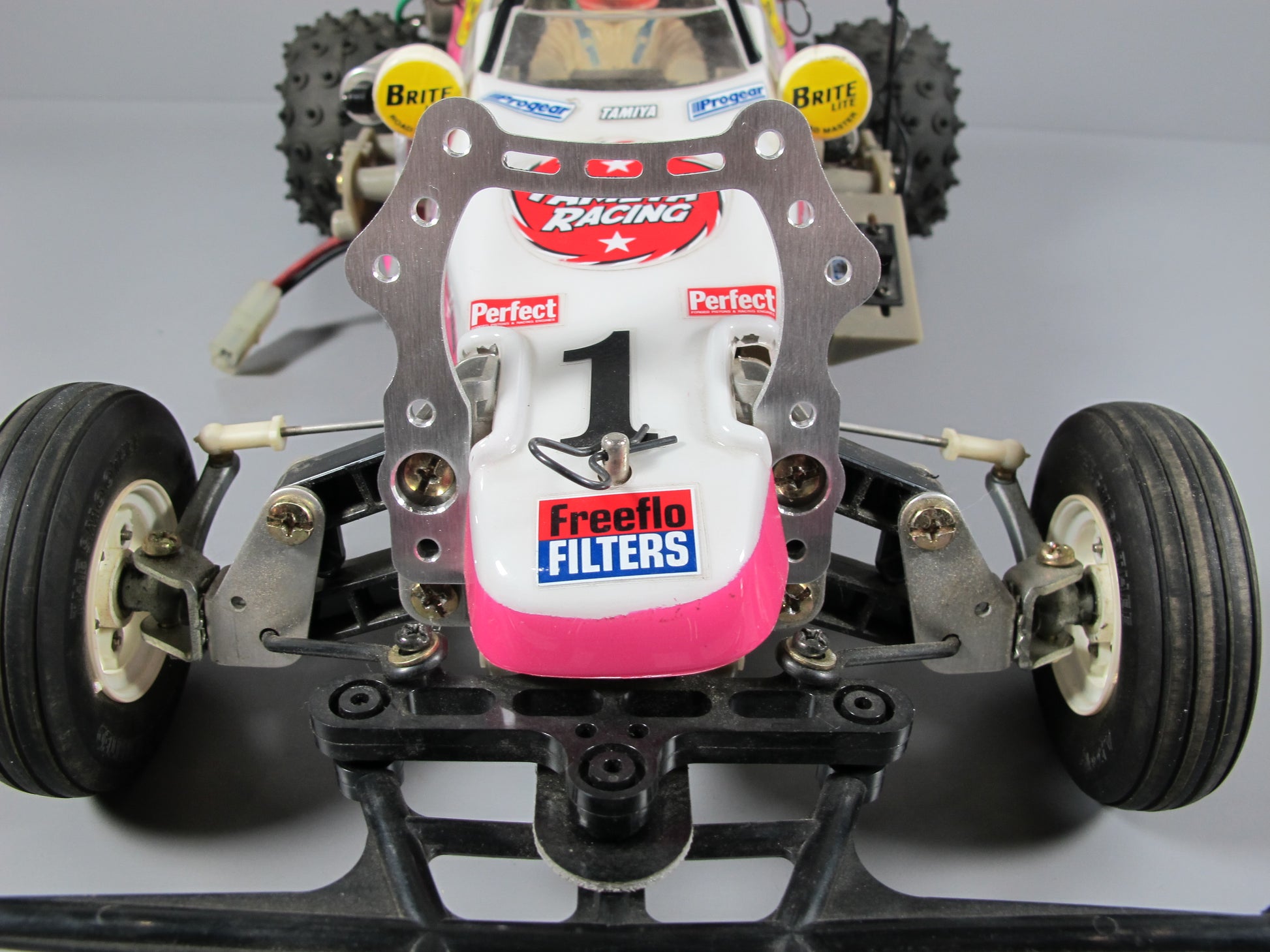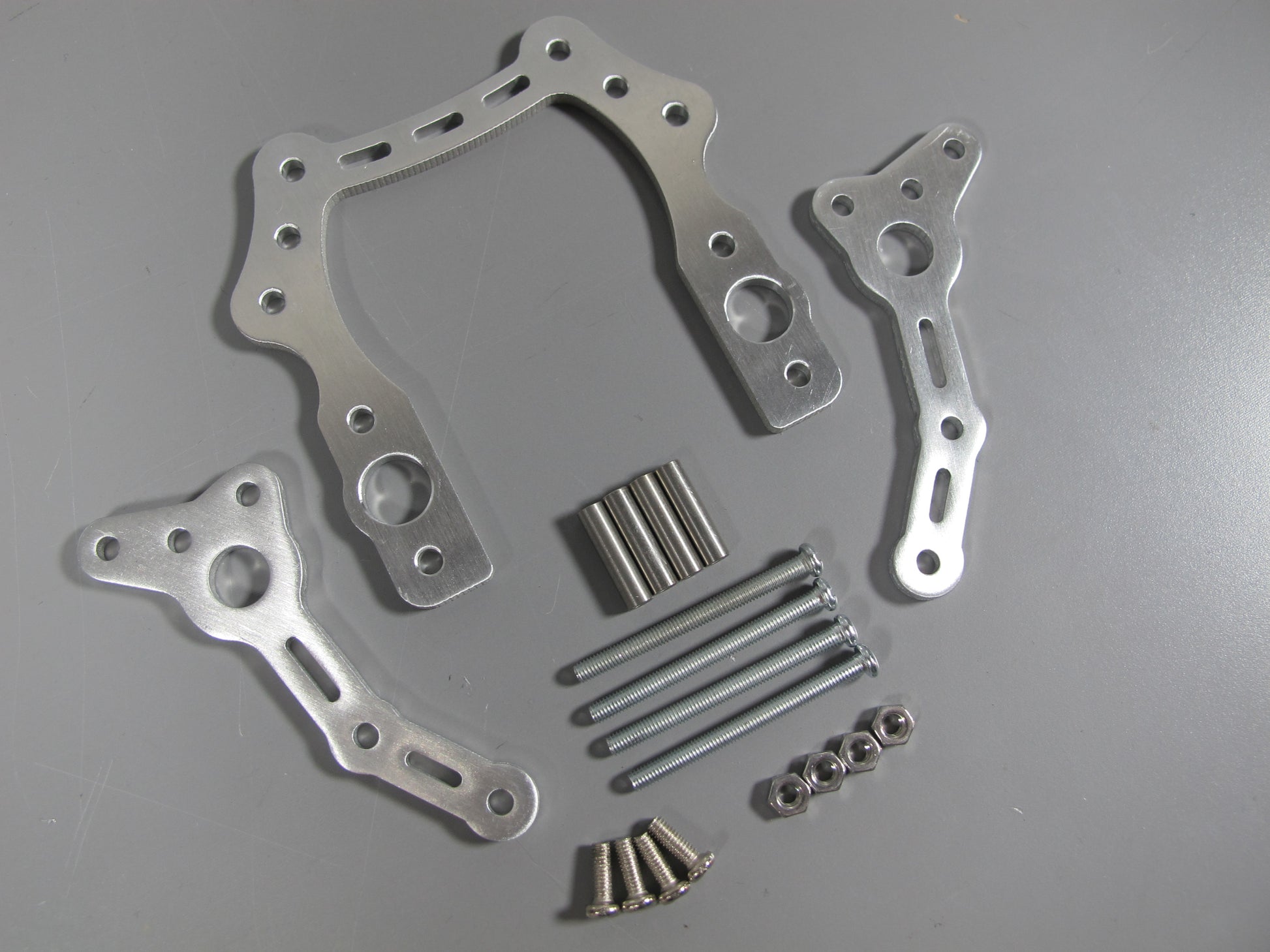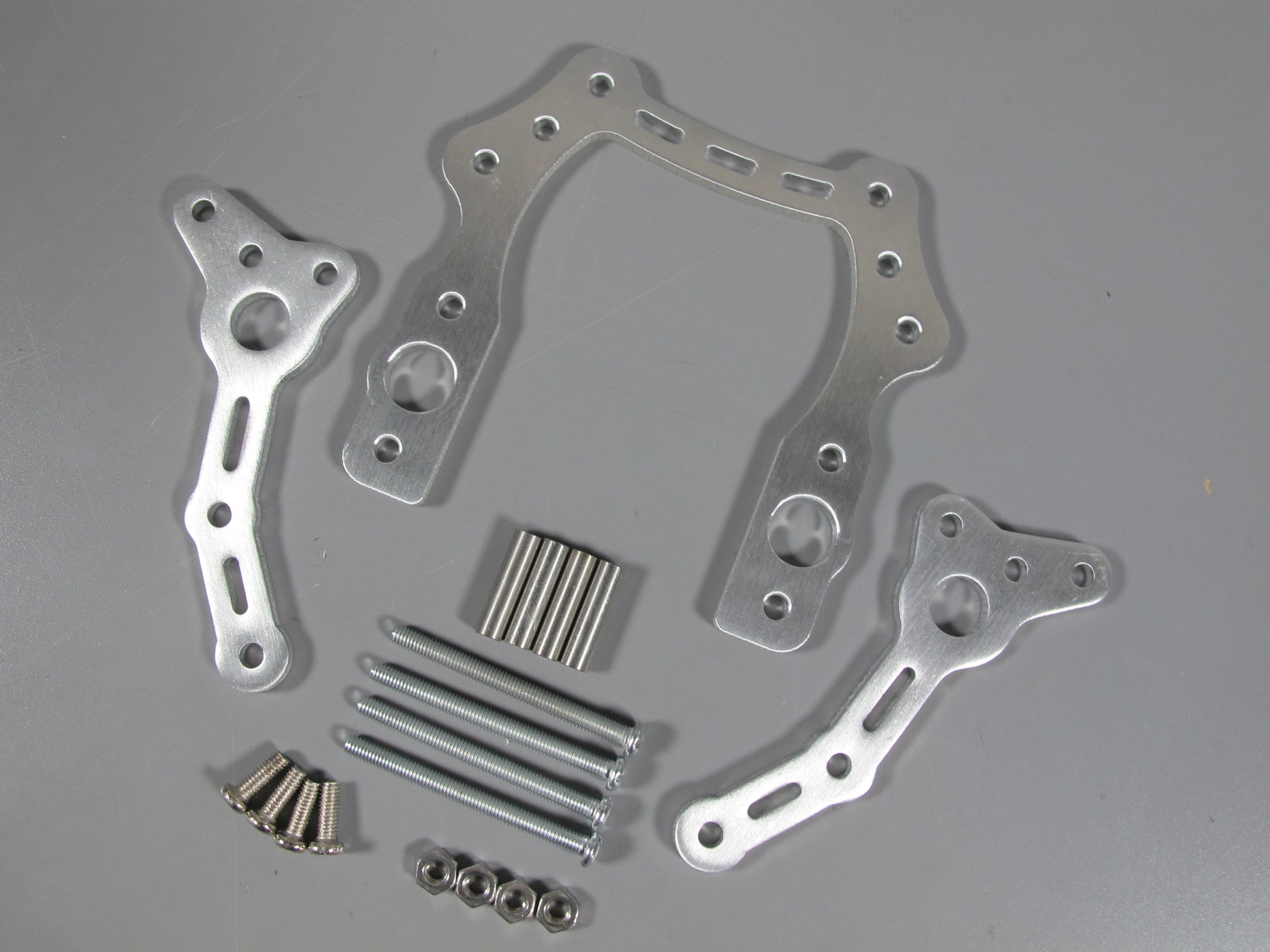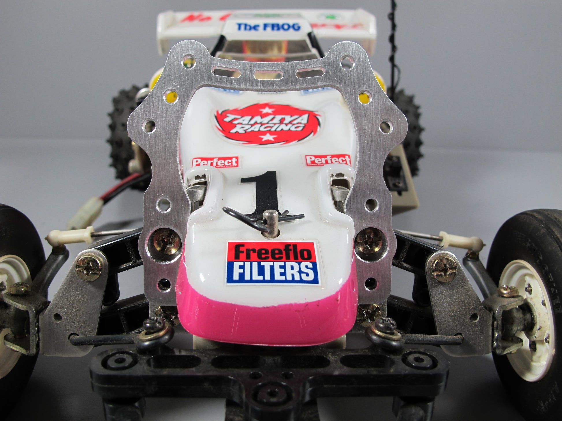Aluminum Front Adjustable Front and Rear Suspension Shock Tower Bracket Plate for 1/10 Remote Control Car Tamiya The Frog and Subaru Brat. Remove the front plastic plate replace with this aluminum plate and you can add you own shock with it. The Frog buggy show in picture only for reference not include.